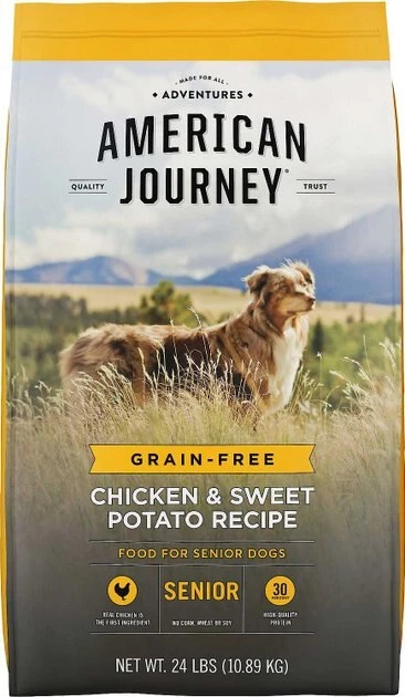 - Grain-free senior dry dog food helps support healthy aging with real chicken as the first ingredient, plus a blend of targeted nutrients.