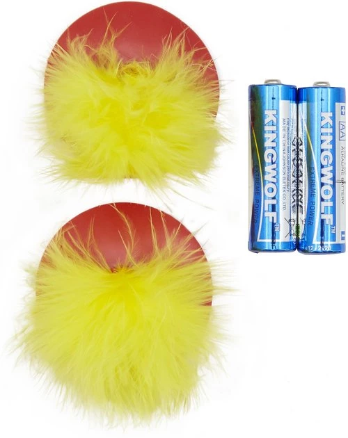 - Includes two AA batteries and two feather toys