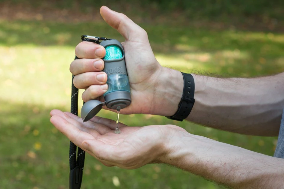 • Carabiner clip allows you to attach the kit to your belt loop, bag or dog’s leash for hands-free holding.