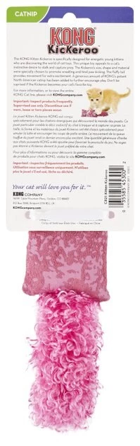 Watch your cat attack, wrestle and snuggle with her KONG Kickeroo Kitten Toy. This kitten-sized version of KONG’s unique cat toy appeals to your little lion’s instinctive desire to stalk and capture prey. Not only is the Kitten Kickeroo’s size specifically tailored for long, lanky kittens, but the shape and material were specially chosen to promote wrestling and hind paw kicking. The crinkling texture of the Moppy Kickeroo invites play, while the fluffy tail provides movement for extra excitement. Inside, there’s a generous amount of KONG Premium North American Catnip to keep your kitten occupied and entertained.
