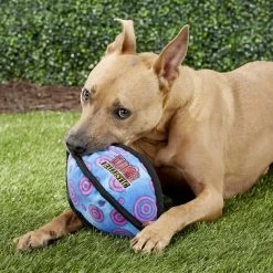 Your dog can have double the fun with the KONG Wiggi Tumble Assorted Dog Toy. This dual-ball set features a tumbling squeaky ball inside a soft and chewy latex shell. This interactive toy offers plenty of fun for you and your pup. Simply pick it up by one of the easy-grip openings and give it a toss—the unpredictable bouncing action will send your dog on a wild and silly chase to catch it! When he finally stops his prize, your pup can chomp down on soft, natural latex that feels good against his teeth and gums. Plus, this toy is easy to wipe clean for long-lasting fun indoors or outside. Wiggi Tumble comes in assorted fun colors—see which one you get!